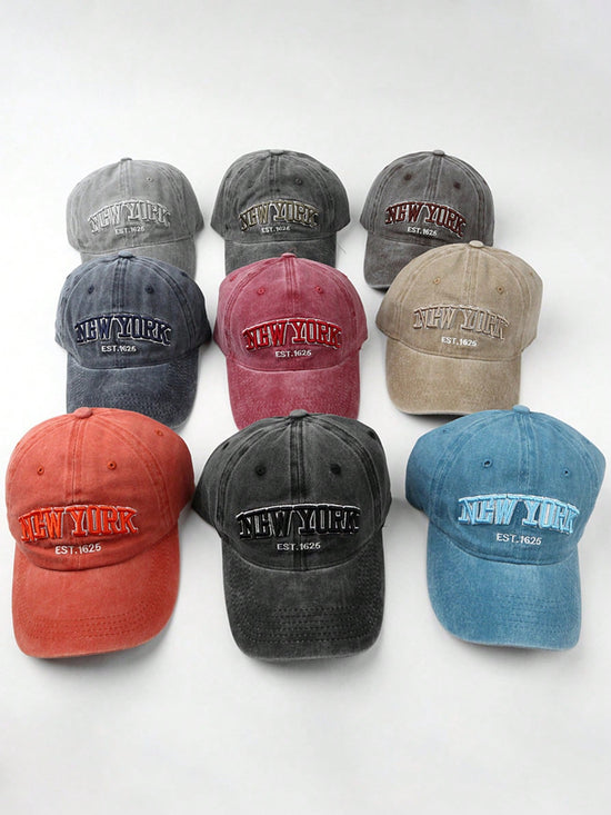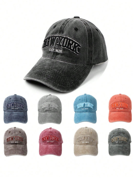 1 pièce Casquette de baseball lavée, réglable, unisexe avec broderie "NEW YORK", chapeau décontracté offrant une protection solaire